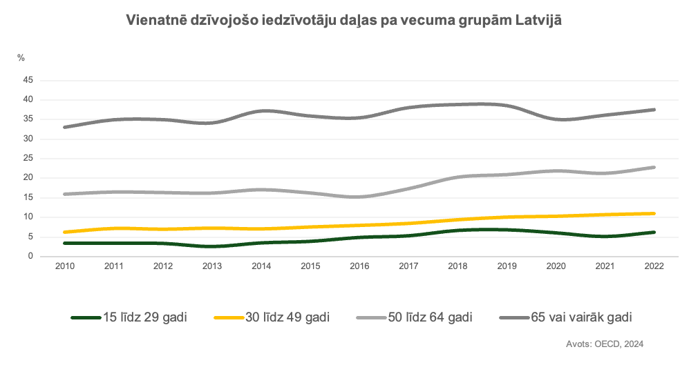 Pircēju vidū aizvien pieprasītākie ir 1-2 istabu mājokļi, kas skaidrojams ne tikai ar finansiāliem apsvērumiem, bet arī mājsaimniecību struktūru. Proti, pēc OECD aplēsēm, arvien vairāk Latvijas iedzīvotāju izvēlas vai ir spiesti dzīvot vieni. Pēdējā desmitgadē šādu viena cilvēka mājsaimniecību skaits pieaudzis vidēji par pieciem procentpunktiem visās vecuma grupās. Šī tendence nelabvēlīgi ietekmē iedzīvotāju spēju vaidot uzkrājumus. Mūsdienu prasībām neatbilstošs, energoneefektīvs mājoklis ir milzīgs finansiālais slogs ar niecīgām cerībām uz vērtības pieaugumu.